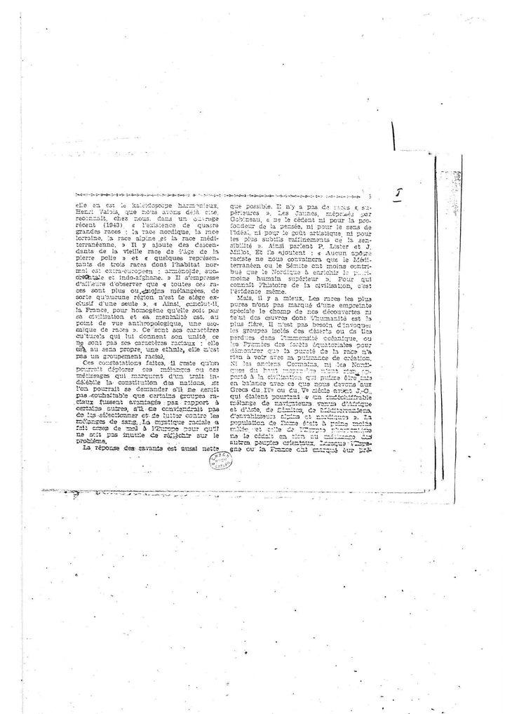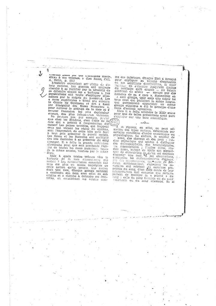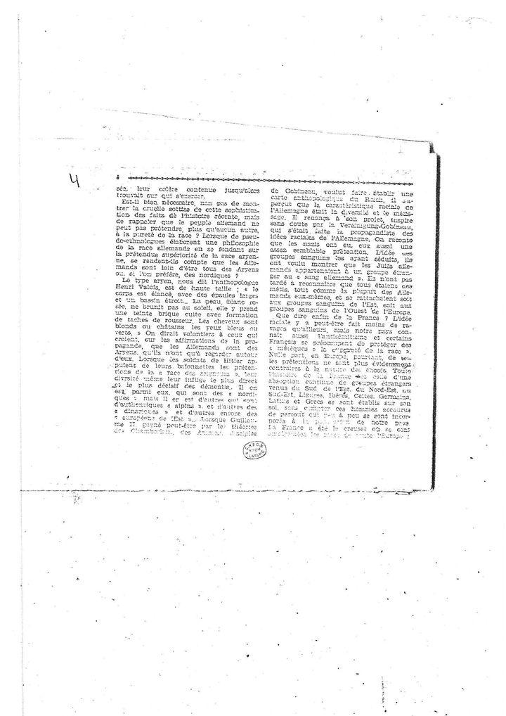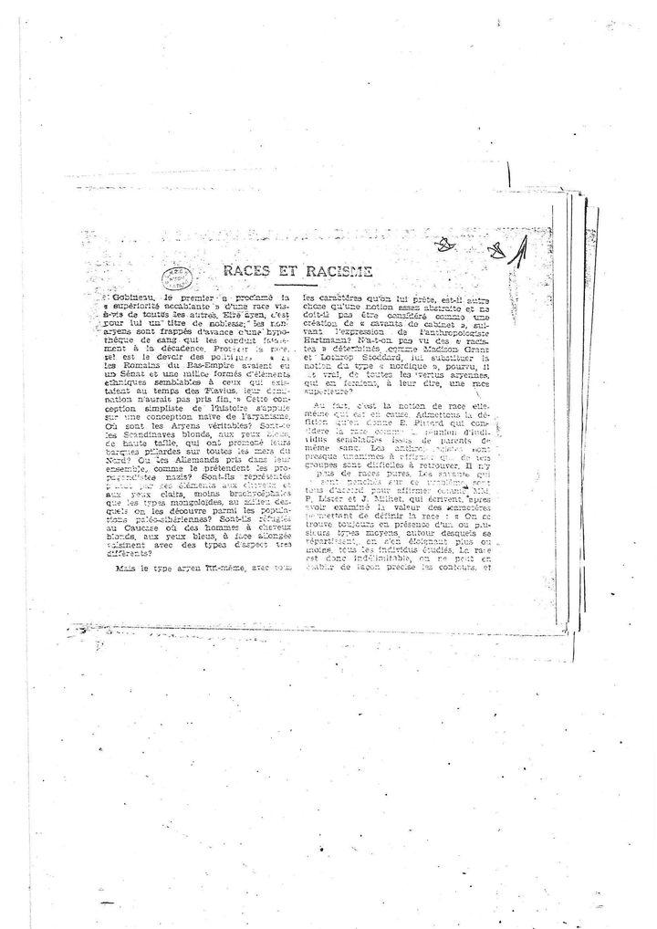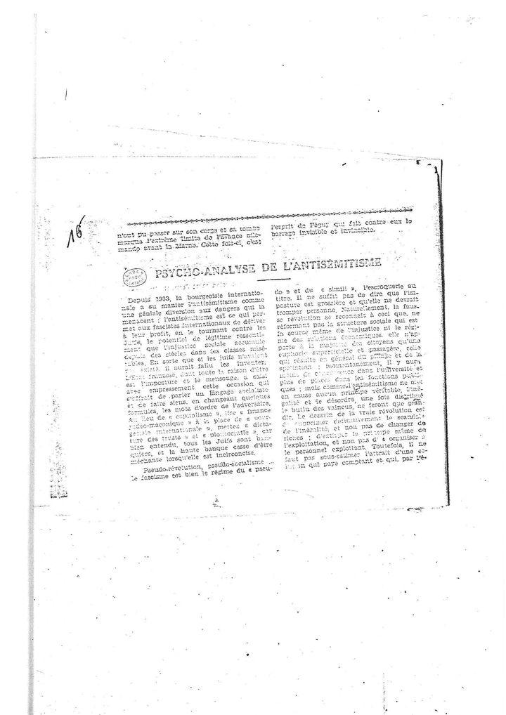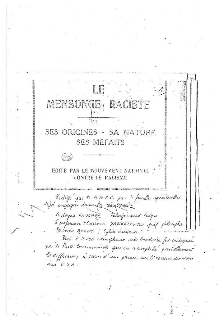 Scan de la publication clandestine Le mensonge raciste, annotée de la main de Daniel Latapie, résistant et historien spécialiste de la Seconde Guerre mondiale dans le midi toulousain.
