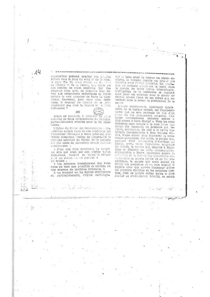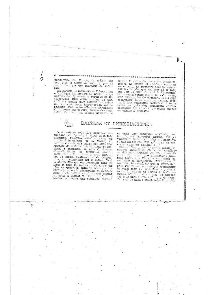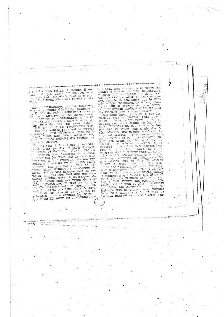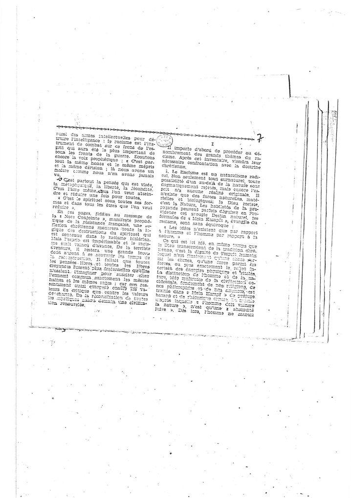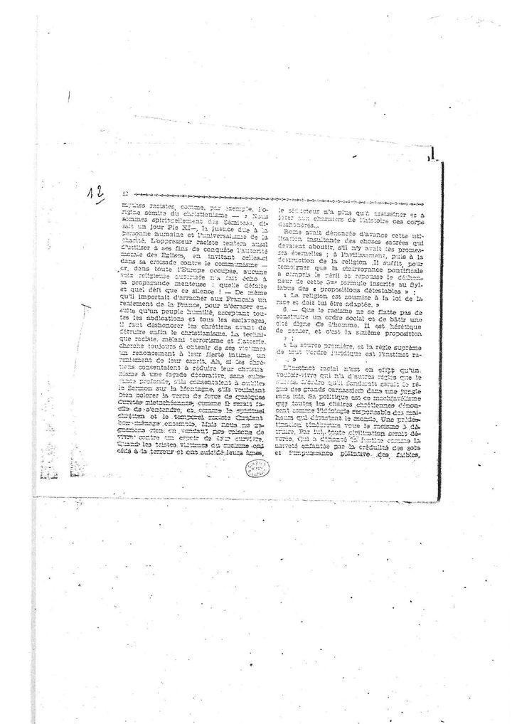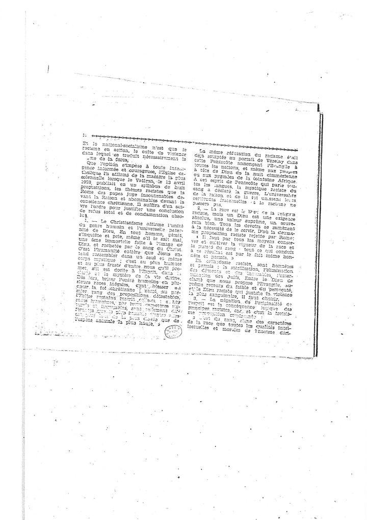 Scan de la publication clandestine Le mensonge raciste, annotée de la main de Daniel Latapie, résistant et historien spécialiste de la Seconde Guerre mondiale dans le midi toulousain.