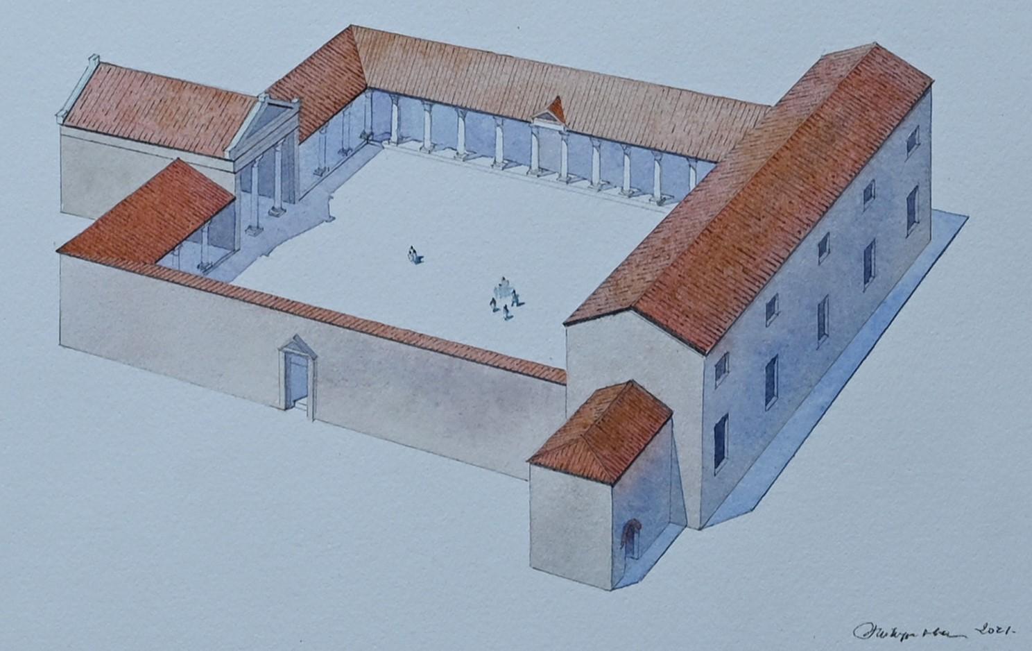 Ce marché (macellum) de 54 mètres de long est l’un de plus grand de l’empire romain d’Occident. On y trouvait une quarantaine de boutiques, surélevées d’un étage pour le stockage des marchandises. Trois entrées à exèdre donnaient accès, à partir d’un promenoir, à deux séries de boutiques intérieures agencées sur les longs côtés d’une vaste cour tripartite. Reconstruit au début du 2ᵉ siècle, il fut transformé en basilique civile organisée autour d’une cour à portique et à une curie (pour la réunion du Sénat local).