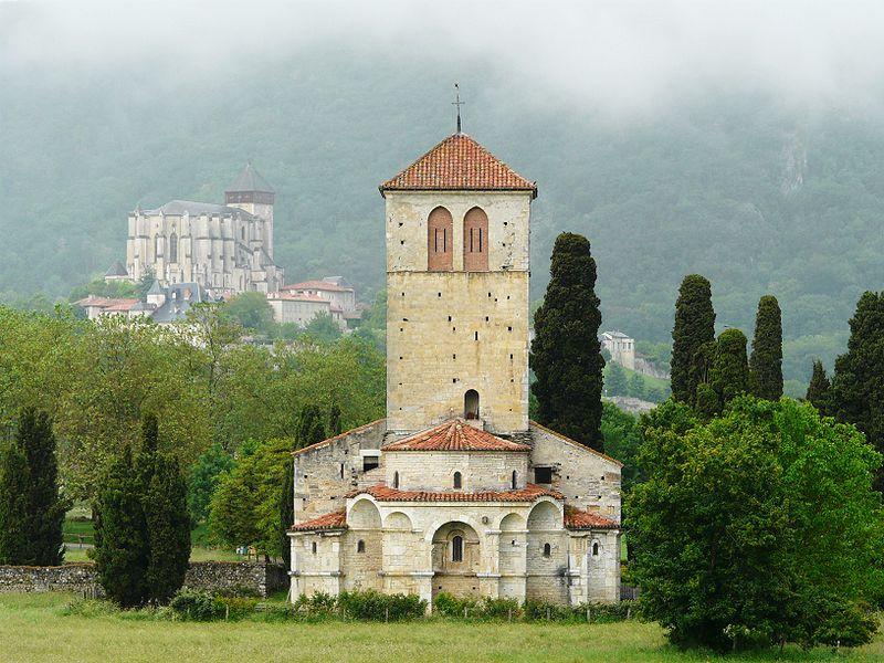 La basilique Saint-Just de Valcabrère, Haute-Garonne, France. Au second plan, le village de Saint-Bertrand-de-Comminges et sa cathédrale. © Père Igor